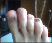 Aamu oli vastahakoinen. Oikea jalka on sen näköinen, että jos se olisi jonkun muun jalka niin en viitsisi katsella. Ulkosyrjään on kantaluun viereen haavan kohdalle tullut painauma joka on aivan musta. Iho on koko kantapään alueelta aivan punainen ja hieman turvonneen oloinen. En laittanut uutta Compeedia siihen päälle vaan ajattelin kokeilla ilman. Huomasin myös että oikean jalan nimetön varvas on aivan musta ja siitä lähtee kynsi… Mistäköhän sekin.