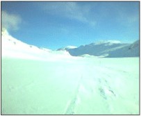 Tuuli yltyi taasen erittäin kovaksi joskin ei aivan eilisen veroiseksi. Aurinko pilkisteli silloin tällöin pilvien raosta, mutta lämpötila pysyi onneksi miinuksella lähes koko päivän. Nyt näyttää siltä, että tuuli on hieman laantumassa. Toivottavasti huominen olisi koko päivän huomattavasti tyynempi. Seuraava tupa on Sälka, mutta jospa jo viimein tulisi telttayö. Sälkan tuvalle on matkaa parikymppiä enkä viitsisi enää ahnehtia parin viimepäivän lailla kilometrejä.